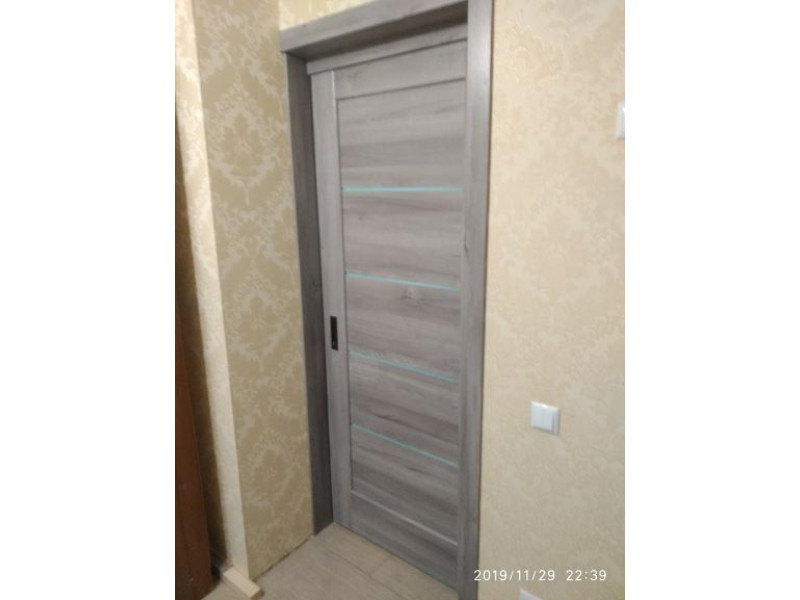 В квартире заказчика было установлено 2 полотна на раздвижных системах и 1 полотно - классический дверной блок в санузел.