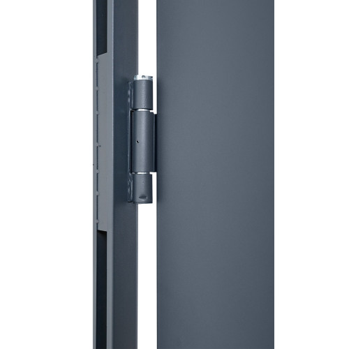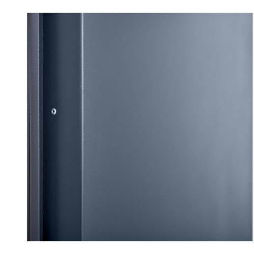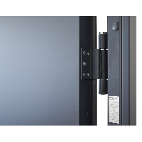 Обеспечивается за счет жесткой профильной конструкции, двумя стальными листами металла (1,2/1 мм) и 4 ребрами жесткости (2 горизонтальных, 2 вертикальных).