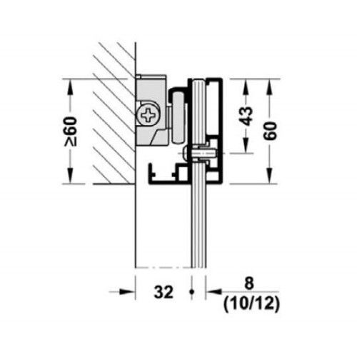 Комплект фурнітури DESIGN 80-M для 1-ого дверного полотна до 80 кг, з ходовою шиною алюміній без покриття 1100 мм