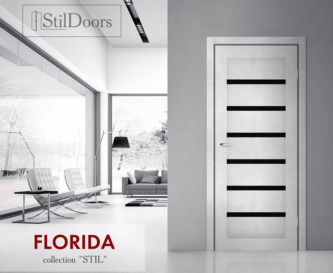 Опис " Міжкімнатні двері StilDoors Florida Сірий Мат (Поліпропілен) Німеччина зі склом сатин або чорним "