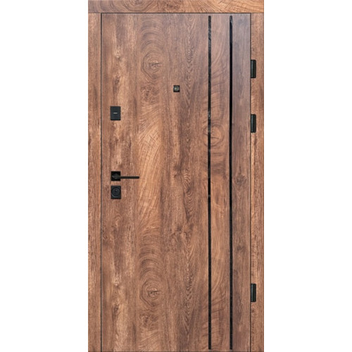 Рама і полотно утеплені мінеральною ватою, що забезпечує стабільний комфорт у квартирі та мінімізує проникнення сторонніх звуків з під’їзду. Два контури ущільнення типу V-подібні гарантують щільний притвор і захист від протягів.