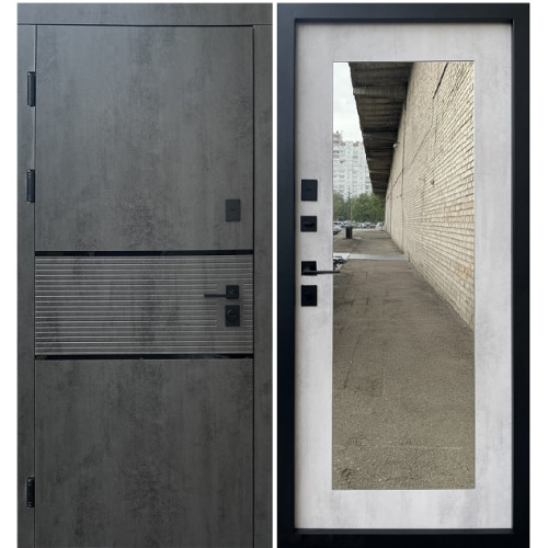 Вхідні двері Форт Тріо - Палермо колір Бетон темний титан софттач/Бетон сніжний + дзеркало