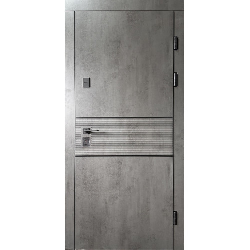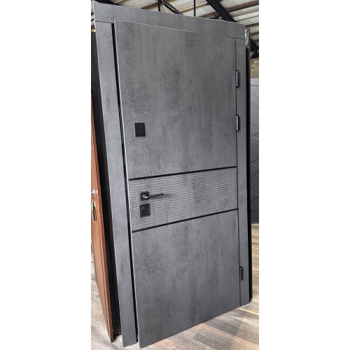 Шукаєте ідеальні вхідні двері в квартиру? Модель "Венеція" поєднує в собі трендовий дизайн "Бетон" та максимальну функціональність. Ці двері не лише забезпечують високий рівень захисту, але й візуально розширюють простір вашого передпокою завдяки великому вбудованому дзеркалу.