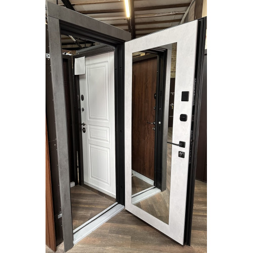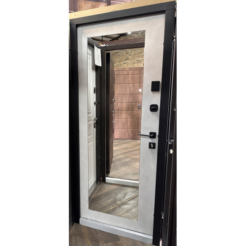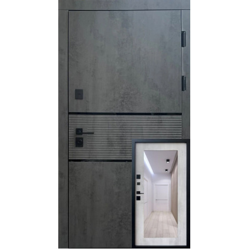 Вхідні двері модель Венеція Бетон темний/Бетон сніжний для квартири з ДЗЕРКАЛОМ (3 контури ущільнення)