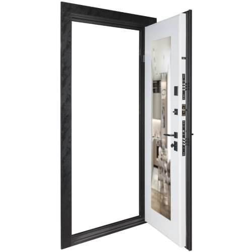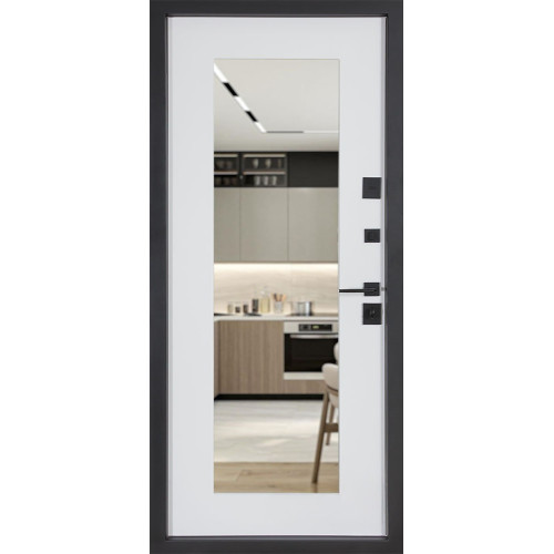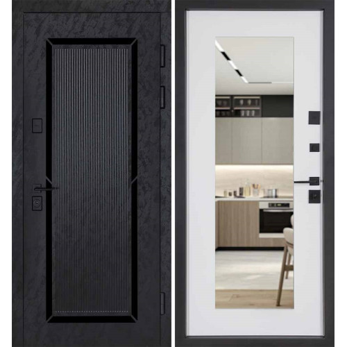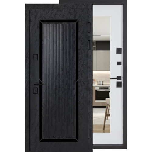 Вхідні Двері В-83 модель 594/605 дзеркало Оксид чорний Весь декор/Біла шагрень Булат (квартира)