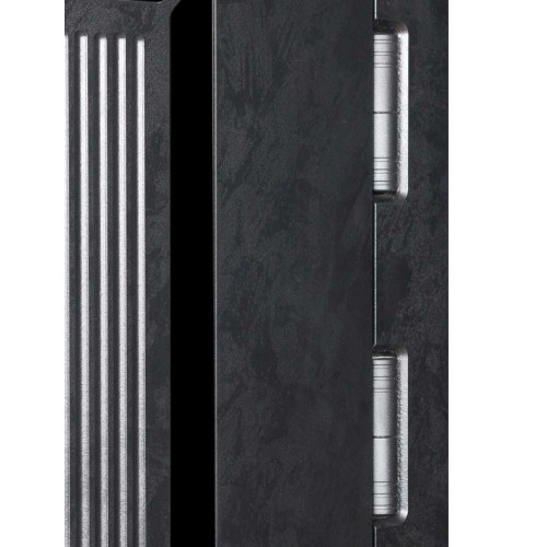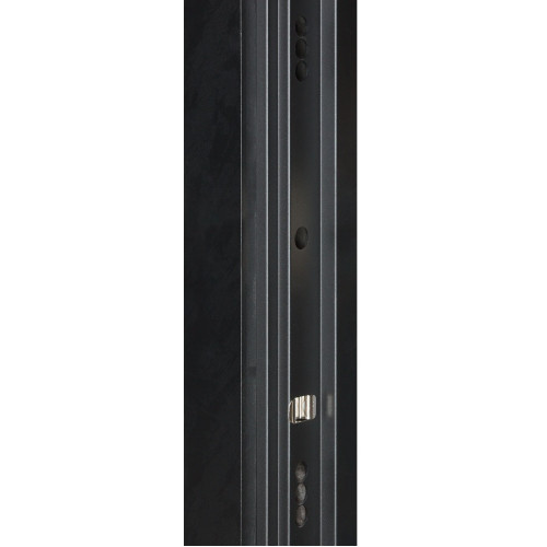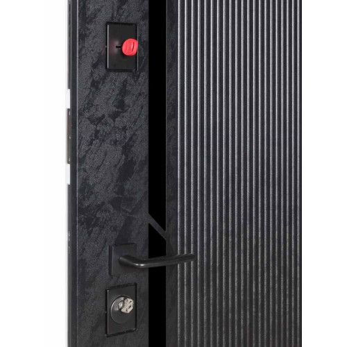 Дверний блок виготовлений на основі гнутого металевого короба 110 мм з товщиною сталі 1,2 мм, що забезпечує жорсткість конструкції та стабільну геометрію навіть при активній експлуатації. Полотно товщиною 100 мм має 4 ребра жорсткості, сталевий лист 1 мм і посилені металеві кишені під замки, що підвищує зламостійкість дверей.