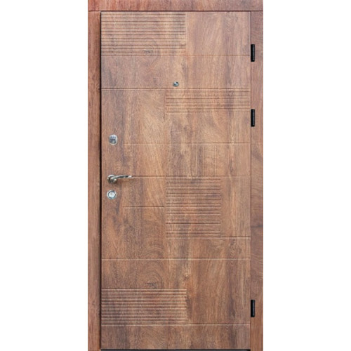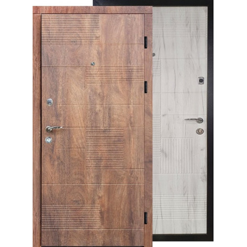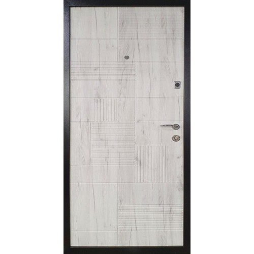 Оснащены двумя замками: нижний AVERS Т-52, верхний APECS Т-57 (сувальдные), утопленная броненакладка, три подшипниковые петли, антисрезы (3 шт.), глазок, эксцентрик для регулировки притвора. МДФ-накладки 10 мм с обеих сторон, наличник со скрытым креплением.
